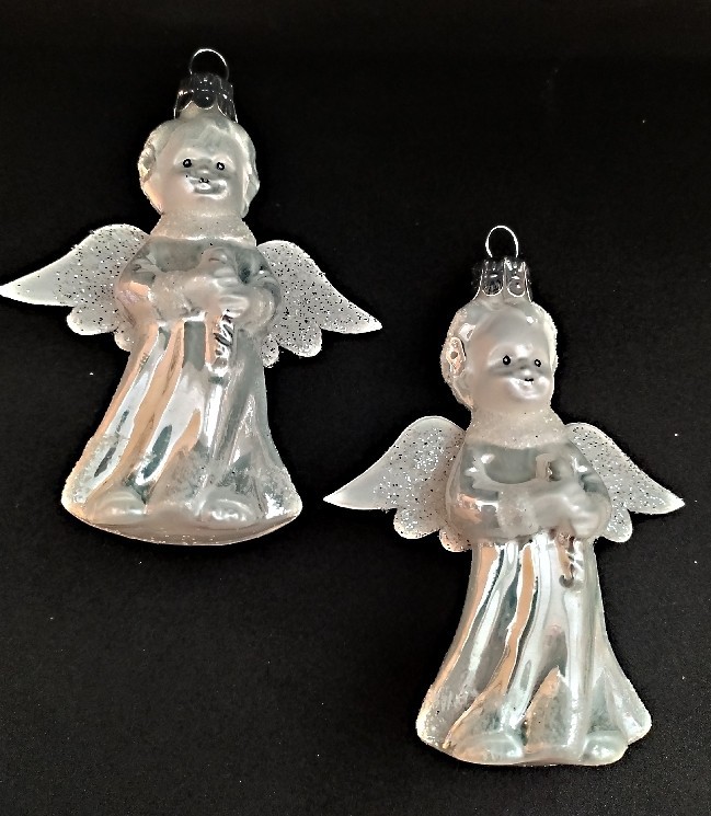 Skleněná vánoční ozdoba, forma, anděl s flétnou a s křídly, bílý, porcelán, dekor, velikost 10x4,8 cm + křídla. Foto ilustrační
