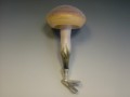Skleněná vánoční ozdoba, volně foukaný tvar, houba kulatý klobouk/5 cm, mat, barevný dekor, velikost 9 cm. Foto ilustrační. Tvar skřipce (kaplík nebo kónická pružinka) a jeho barva (zlatá nebo stříbrná) dle skladových zásob.