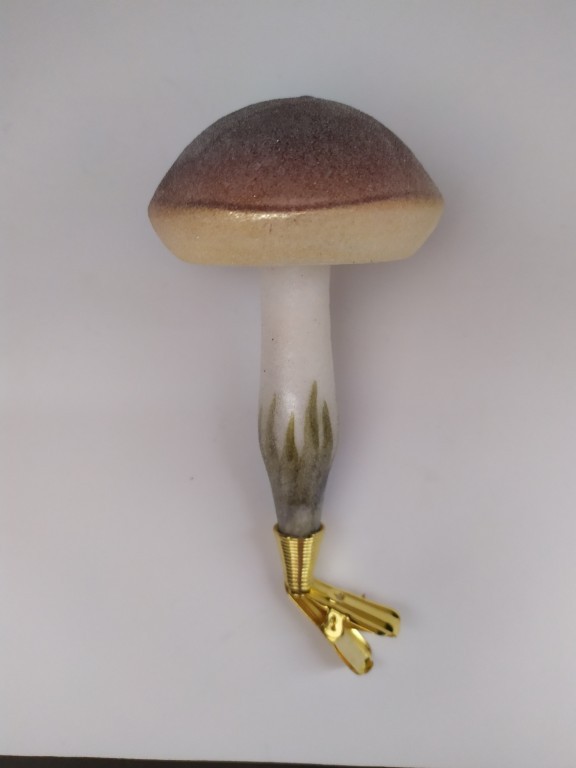 +420 731 683 257vanocniozdoby@slezska-tvorba.czSkleněná vánoční ozdoba, volně foukaný tvar, houba kulatý klobouk/5 cm, mat, barevný dekor, velikost 9 cm. Foto ilustrační. Tvar skřipce (kaplík nebo kónická pružinka) a jeho barva (zlatá nebo stříbrná) dle skladových zásob.