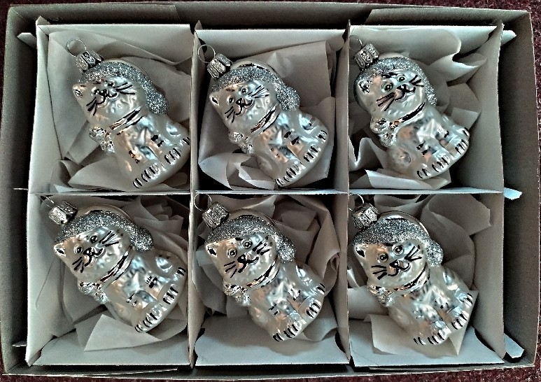 +420 731 683 257vanocniozdoby@slezska-tvorba.czSkleněná vánoční ozdoba, forma, kočka s čepicí, bílá,mat, mourovatá, dekor, velikost 7x4 cm. Foto ilustrační