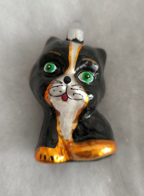 Skleněná vánoční ozdoba, forma, kočka velká, ručně malovaný tmavý dekor, lesk/mat, foto ilustrační. Velikost 10 cm. Limitovaná edice, omezený počet kusů.