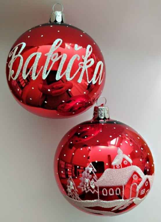 Skleněná vánoční ozdoba s textem/jménem na přání v dárkové krabičce. Text (jméno), který má být na přední straně koule napsán, zadejte do textového okénka po vložení vybrané koule do nákupního košíku, případně do poznámky za fakturačními údaji v objednávce. Foto ilustrační. Text i dárková krabička v ceně.