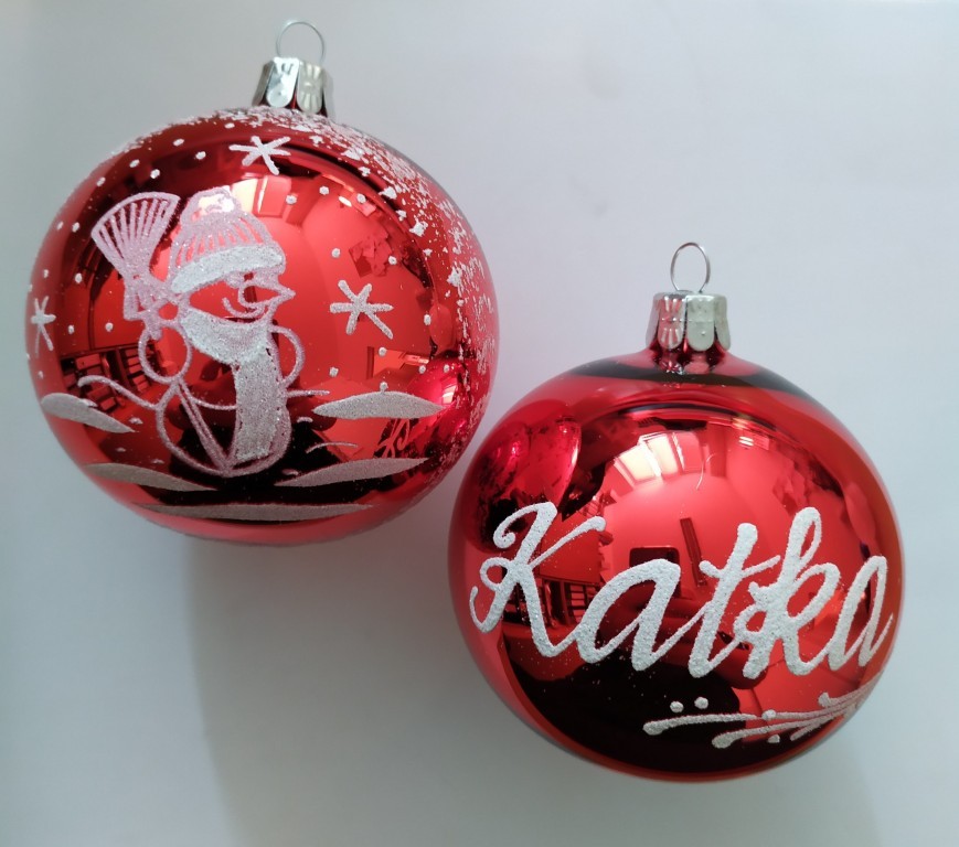 Skleněná vánoční ozdoba s textem/jménem na přání v dárkové krabičce. Text (jméno), který má být na přední straně koule napsán, zadejte do textového okénka po vložení vybrané koule do nákupního košíku, případně do poznámky za fakturačními údaji v objednávce. Foto ilustrační. Text i dárková krabička v ceně.