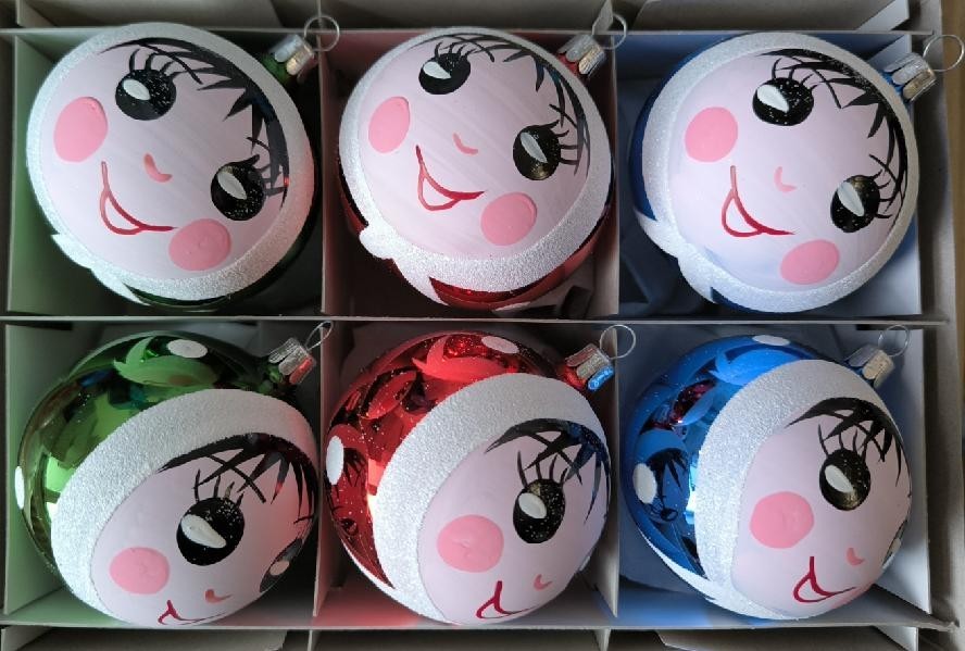 KOULE DĚVČÁTKO V ŠÁTKU, skleněná vánoční ozdoba, sortiment