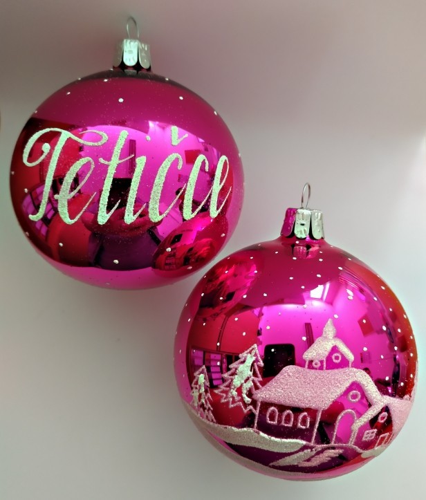 Skleněná vánoční ozdoba s textem/jménem na přání v dárkové krabičce. Text (jméno), který má být na přední straně koule napsán, zadejte do textového okénka po vložení vybrané koule do nákupního košíku, případně do poznámky za fakturačními údaji v objednávce. Foto ilustrační. Text i dárková krabička v ceně.