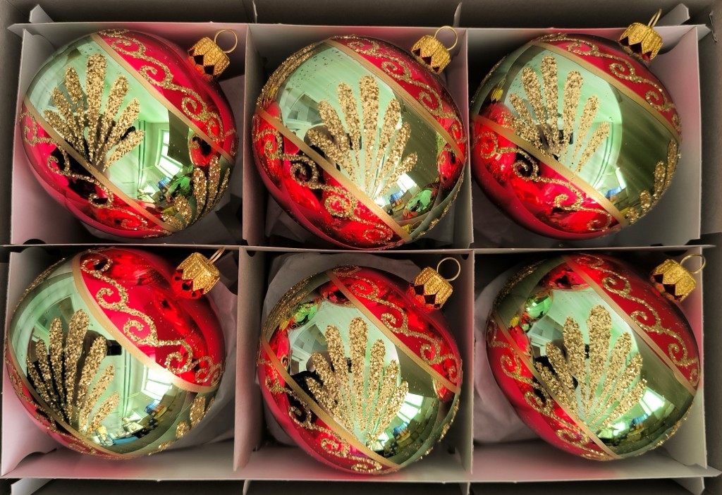 +420 731 683 257vanocniozdoby@slezska-tvorba.czSkleněná vánoční ozdoba ve tvaru koule, hladká, barevný lesk retro dekor, více velikostí. Foto ilustrační