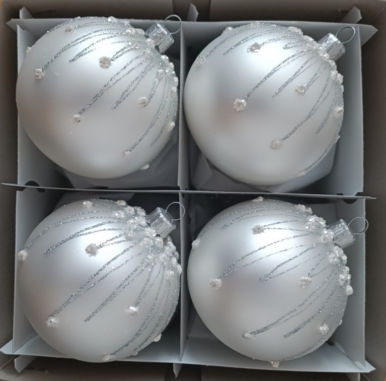 +420 731 683 257vanocniozdoby@slezska-tvorba.czSkleněná ozdoba ve tvaru koule, hladká, bílá/104, mat, plastický dekor, více velikostí, foto ilustrační. (nově 1124T195)