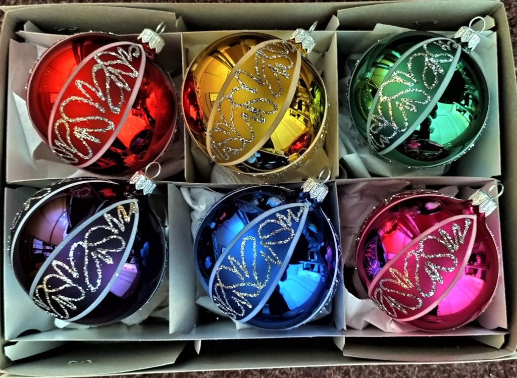+420 731 683 257vanocniozdoby@slezska-tvorba.czSkleněná vánoční ozdoba ve tvaru koule, hladká, barva ass, lesk, matové klíny s malovaným dekorem, průměr koule 8 cm. Foto ilustrační, (sortiment barev: červená, modrá, žlutá, zelená, růžová, fialová)
