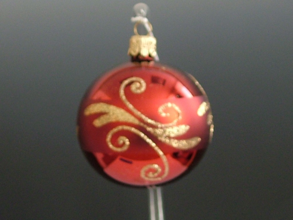 Skleněná vánoční ozdoba ve tvaru koule, hladká, bordó lesk, plast. zlatý dekor, více velikostí. Foto ilustrační