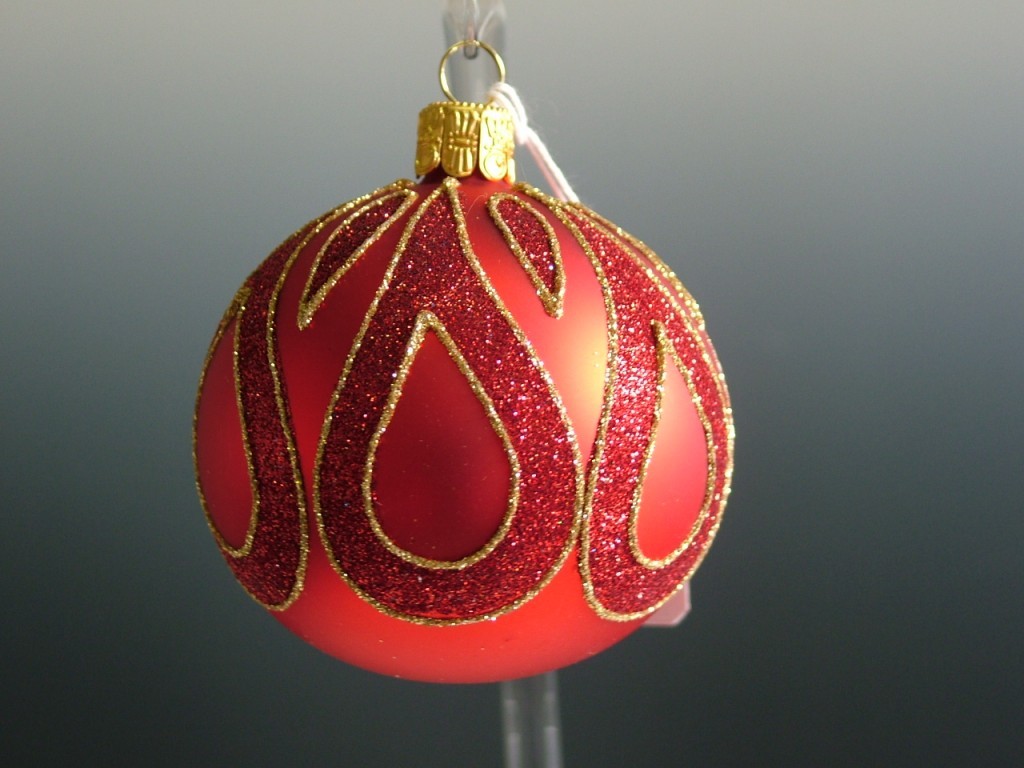 Skleněná vánoční ozdoba ve tvaru koule, hladká, červená, mat, plast. dekor, více velikostí. Foto ilustrační