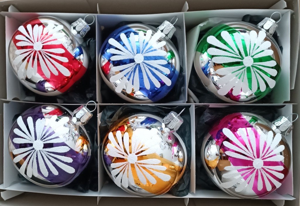 +420 731 683 257vanocniozdoby@slezska-tvorba.czSkleněná vánoční ozdoba ve tvaru koule, hladká, barva ass, lesk, dekor. Foto ilustrační. V krabici sortiment barev: červená, modrá, žlutá, zelená, růžová, fialová.