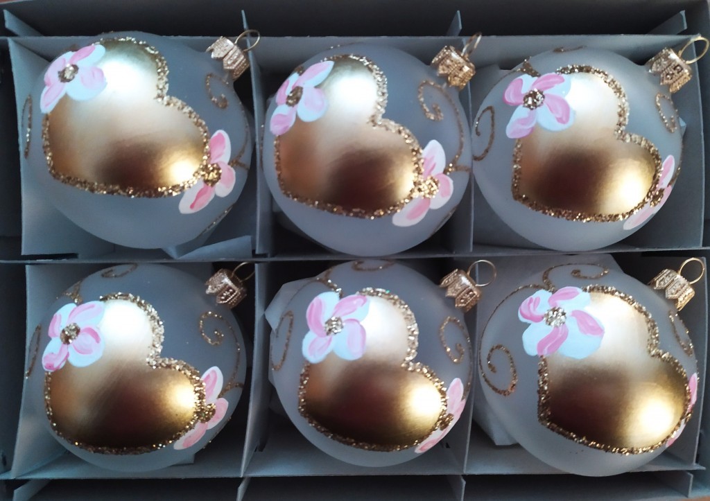 +420 731 683 257vanocniozdoby@slezska-tvorba.czSkleněná vánoční ozdoba, koule, hladká, průhledná, bílá, mat/lesk, ručně malovaný retro dekor, zlaté srdce, foto ilustrační, více velikostí.