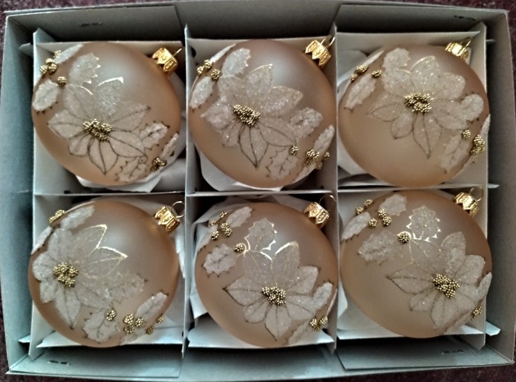 +420 731 683 257vanocniozdoby@slezska-tvorba.czSkleněná vánoční ozdoba ve tvaru koule, hladká, průhledná, zlatý mat, středem koule bohatý bílozlatý plastický dekor/květ, více velikostí. Foto ilustrační