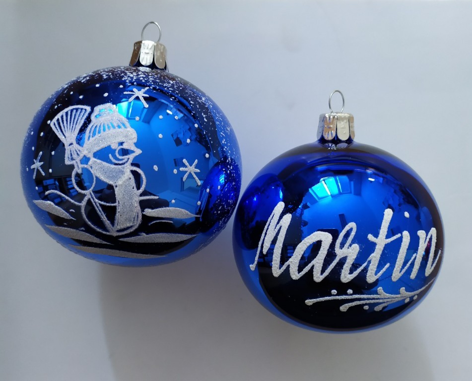 Skleněná vánoční ozdoba s textem/jménem na přání v dárkové krabičce. Text (jméno), který má být na přední straně koule napsán, zadejte do textového okénka po vložení vybrané koule do nákupního košíku, případně do poznámky za fakturačními údaji v objednávce. Foto ilustrační. Text i dárková krabička v ceně.