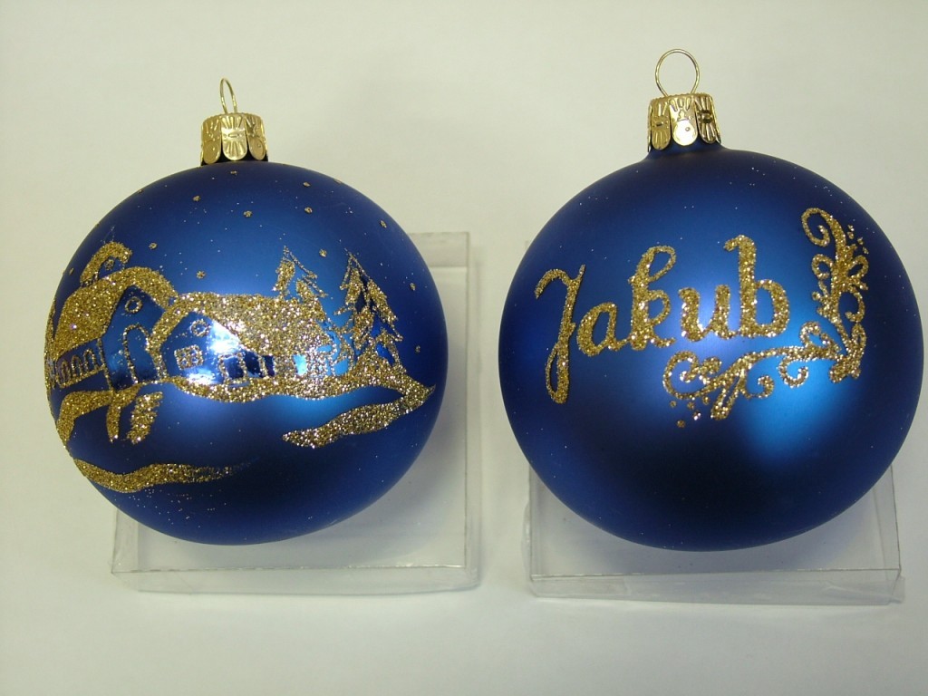 Skleněná vánoční ozdoba s textem/jménem na přání v dárkové krabičce. Text (jméno), který má být na přední straně koule napsán, zadejte do textového okénka po vložení vybrané koule do nákupního košíku, případně do poznámky za fakturačními údaji v objednávce. Foto ilustrační. Text i dárková krabička v ceně.