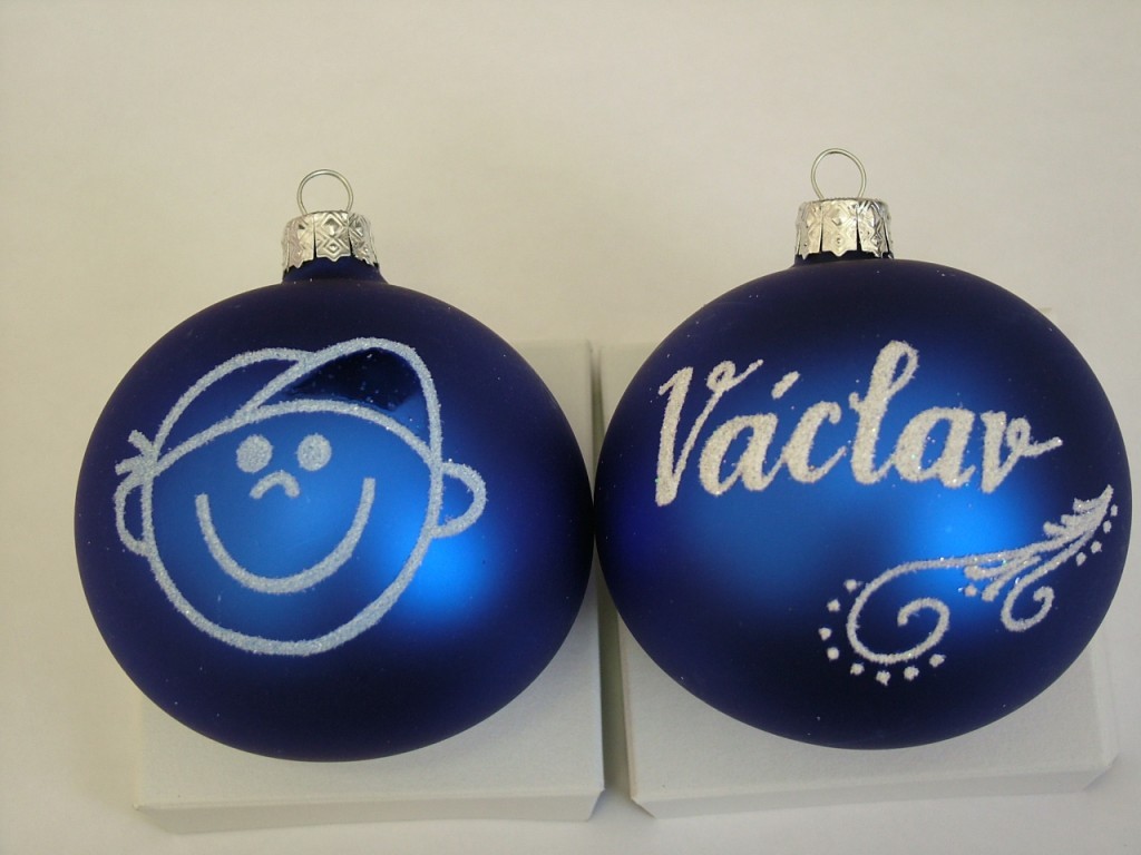 Skleněná vánoční ozdoba s textem/jménem na přání v dárkové krabičce. Text (jméno), který má být na přední straně koule napsán, zadejte do textového okénka po vložení vybrané koule do nákupního košíku, případně do poznámky za fakturačními údaji v objednávce. Foto ilustrační. Text i dárková krabička v ceně.