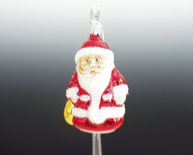 Skleněná vánoční ozdoba, forma, mikuláš dlouhý vous, mat, barevný, dekor, velikost 9x6 cm. Foto ilustrační