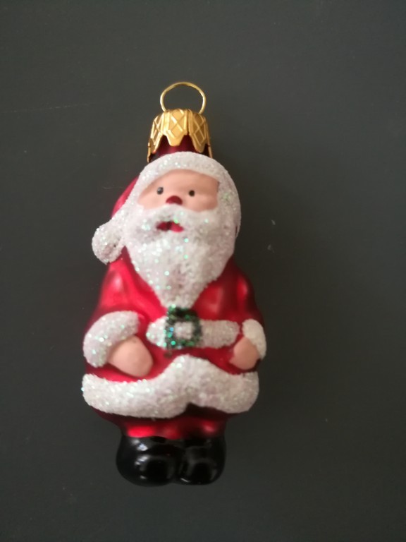 Skleněná ozdoba, forma, barevný dekor, Mikuláš, mat, velikost 4 cm. Foto ilustrační, dekor a barva na figurce se může lišit