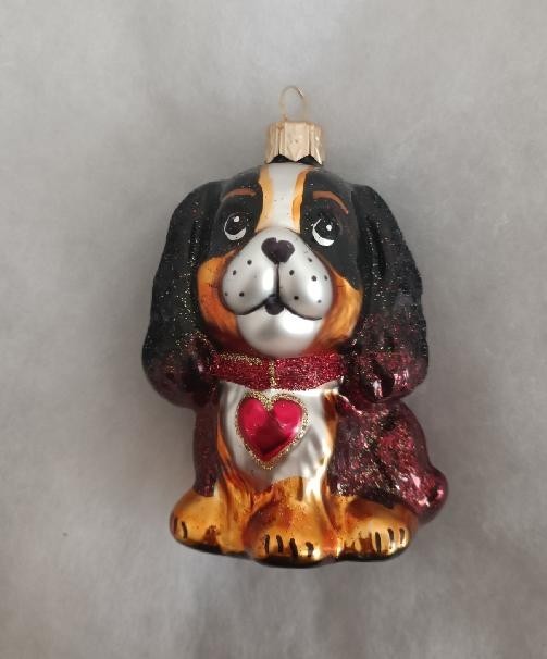 Skleněná vánoční ozdoba, forma, pes velký tmavý, lesk/mat, ručně malovaný dekor, foto ilustrační, velikost 10 cm.