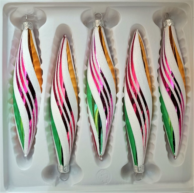 Skleněná vánoční ozdoba ve tvaru rakety, hladká, barva ass, lesk, bílý dekor, velikost 14x3 cm, foto ilustrační