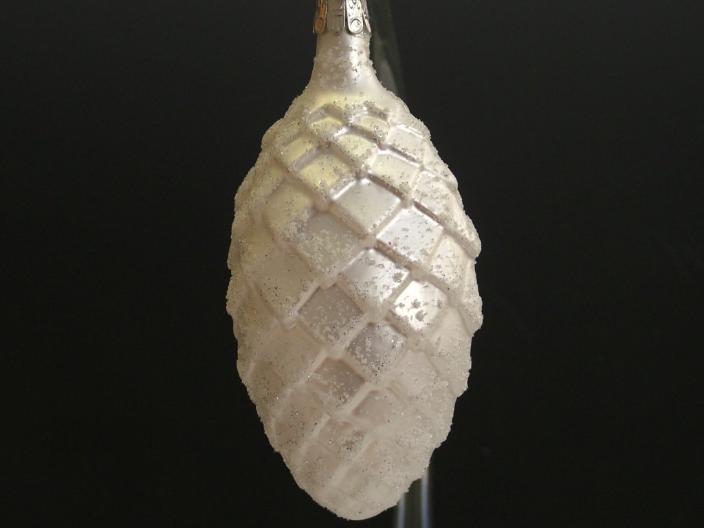 +420 731 683 257vanocniozdoby@slezska-tvorba.czSkleněná vánoční ozdoba, forma, šiška velká, bílý mat, dekor, velikost 10 cm. Foto ilustrační