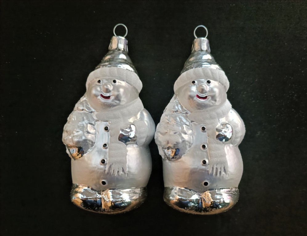 Skleněná vánoční ozdoba, forma, sněhulák se stromkem, bílý, mat, dekor. Foto ilustrační