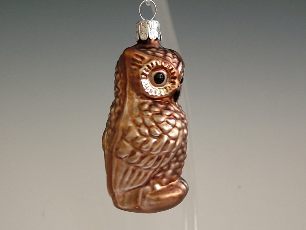 Skleněná vánoční ozdoba, forma, sova, barevný mat/hnědá, dekor, velikost 7x4 cm, barva 474/orig. Foto ilustrační