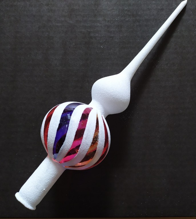 Skleněná vánoční ozdoba ve tvaru špice, 1-kulová, průhledná, hladká, barva ass, lesk, bílý dekor, velikost koule 7 cm