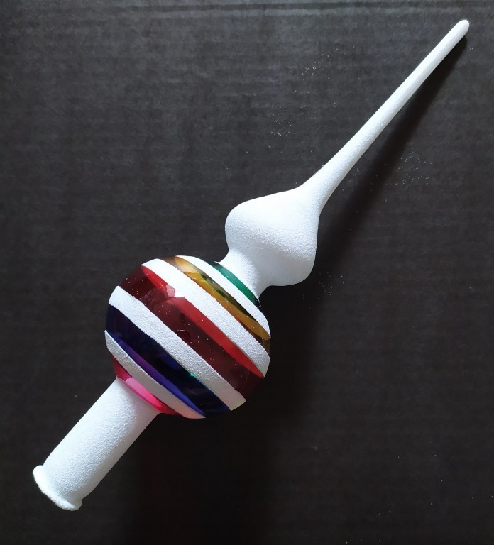 Skleněná vánoční ozdoba ve tvaru špice, 1-kulová, průhledná, hladká, barva ass, lesk, bílý dekor, velikost koule 7 cm