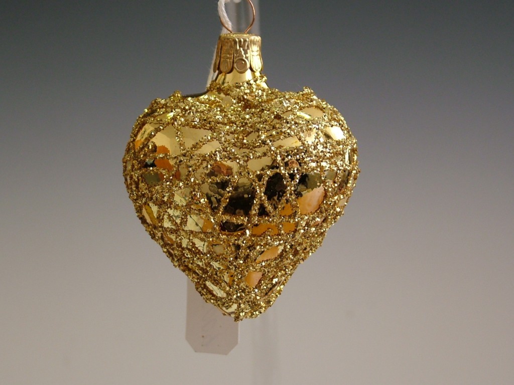+420 731 683 257vanocniozdoby@slezska-tvorba.czSkleněná vánoční ozdoba ve tvaru srdce, forma, hladké, zlaté, lesk, plast. dekor, velikost 5,4x5,3 cm, foto ilustrační