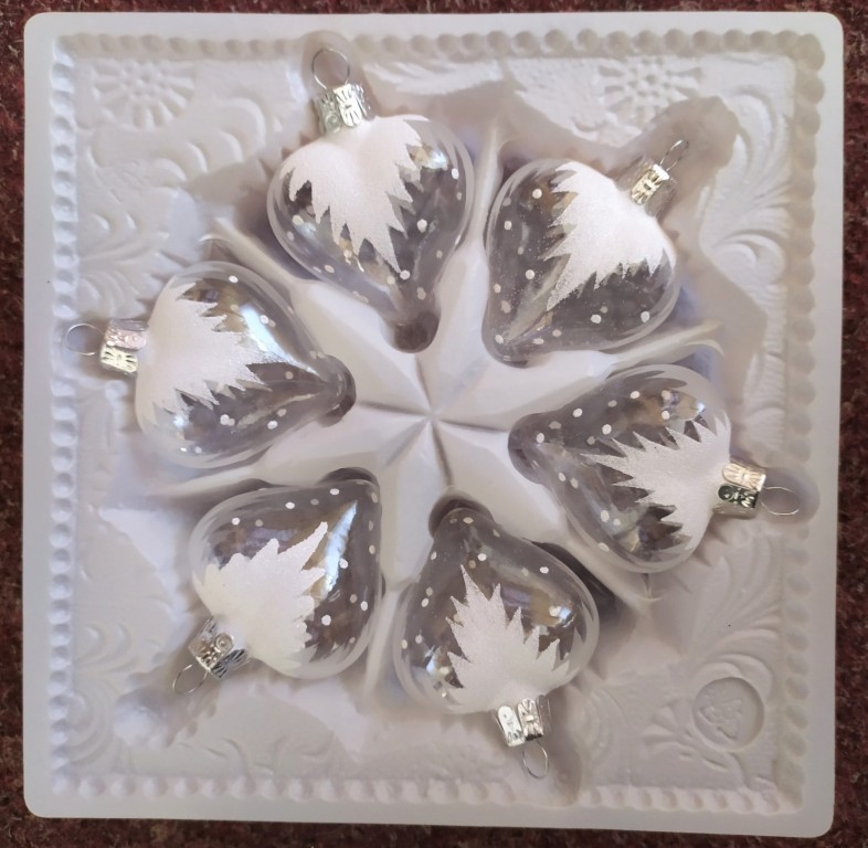 +420 731 683 257vanocniozdoby@slezska-tvorba.czSkleněná vánoční ozdoba ve tvaru srdce, forma, hladké, čiré, lesk, bohatý bílý dekor, velikost 5,4x5,3 cm, foto ilustrační