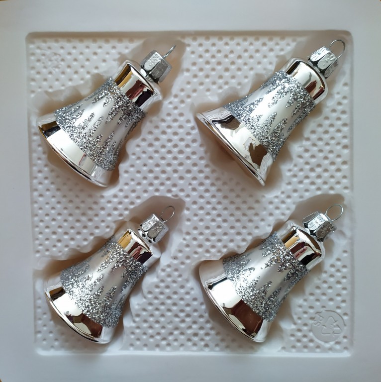 +420 731 683 257vanocniozdoby@slezska-tvorba.czSkleněná vánoční ozdoba ve tvaru zvonku, hladký, stříbrný, středem bílý matový pruh se stříbrnými rampouchy, velikost 5,5 cm, foto ilustrační