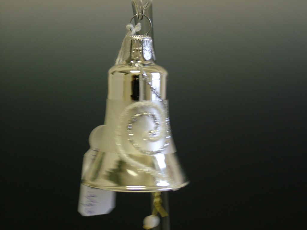 ZVONEK, SKLENĚNÁ VÁNOČNÍ OZDOBA, STŘÍBRNÝ, SYPANÝ DEKOR