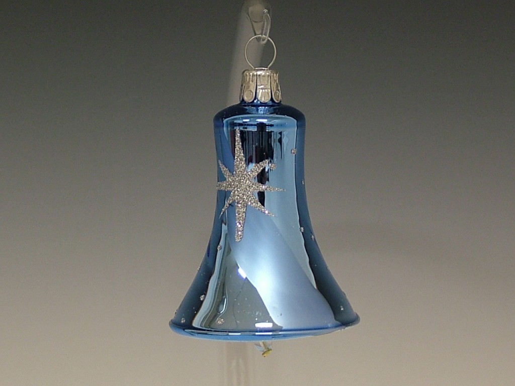 ZVONEK, SKLENĚNÁ VÁNOČNÍ OZDOBA, SV. MODRÝ, DEKOR HVĚZD