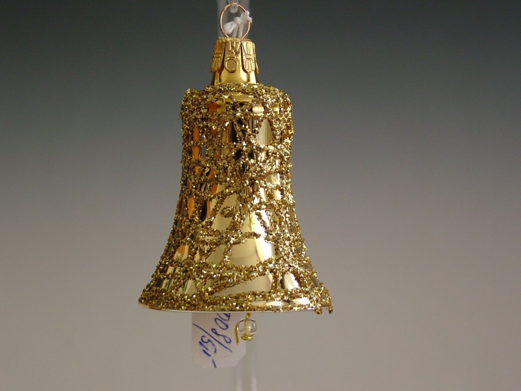 +420 731 683 257vanocniozdoby@slezska-tvorba.czSkleněná vánoční ozdoba ve tvaru zvonku, hladký, zlatý, lesk, plast. dekor, velikost 5,5 cm, foto ilustrační